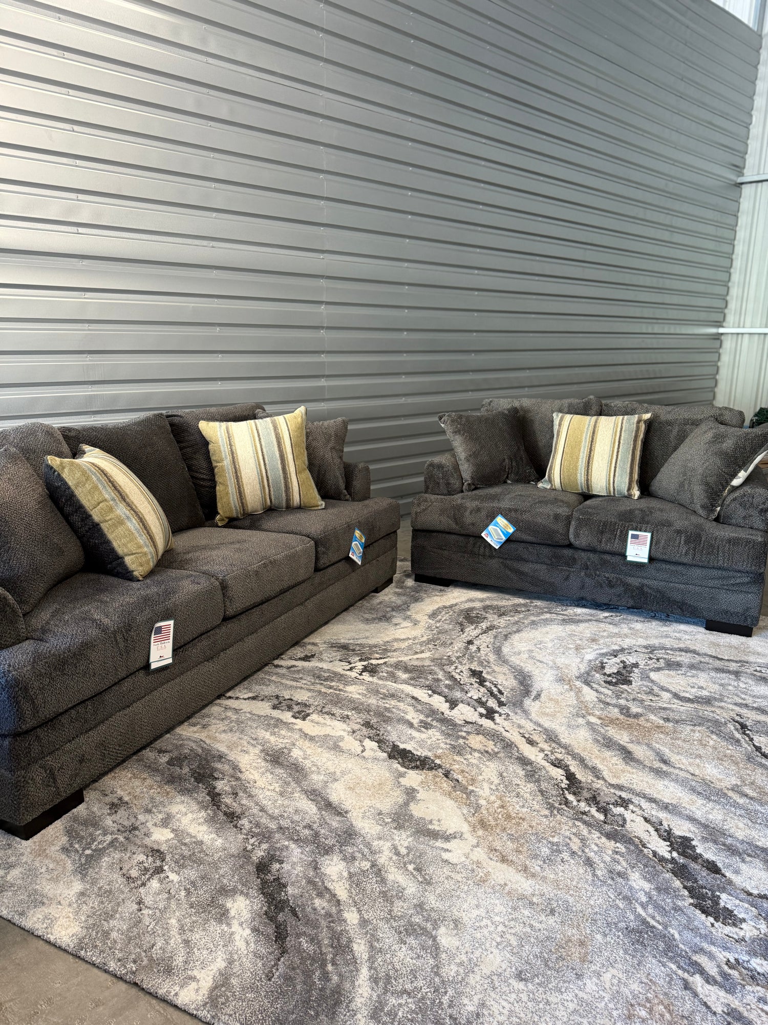 Experience ultimate comfort with this brand-new, plush sofa and love seat set, complete with tags still attached. Designed and made in the U.S., it offers deep seating perfect for cozy lounging.